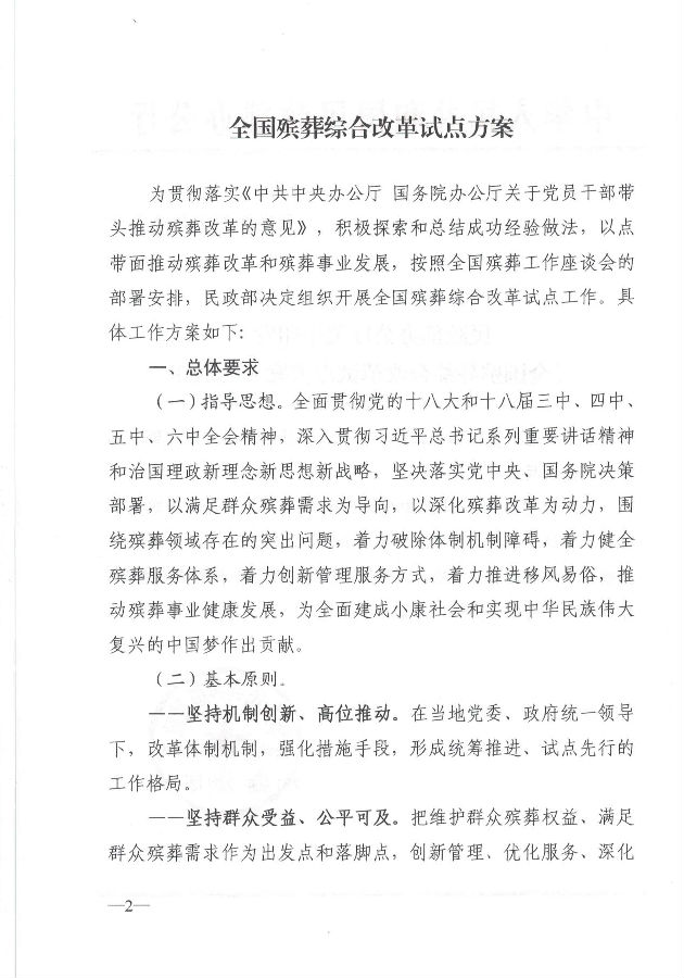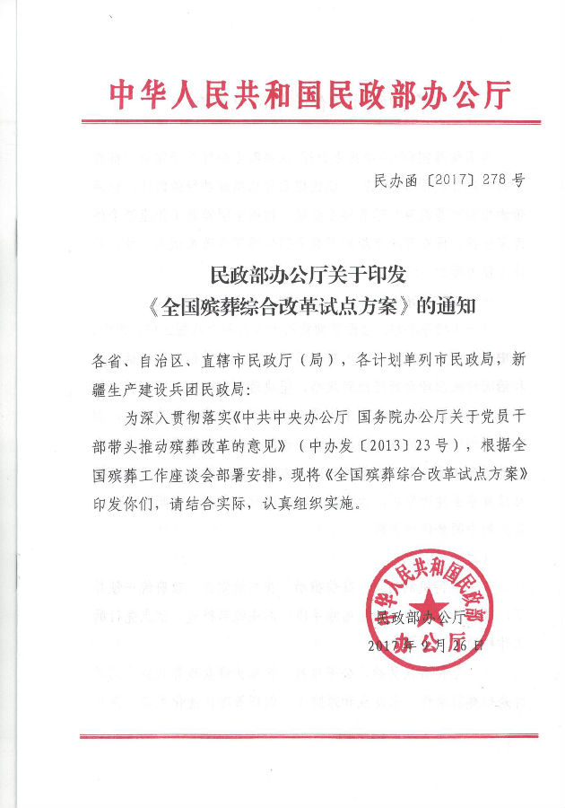 民政部辦公廳關于印發(fā)《全國殯葬綜合改革試點方案》的通知