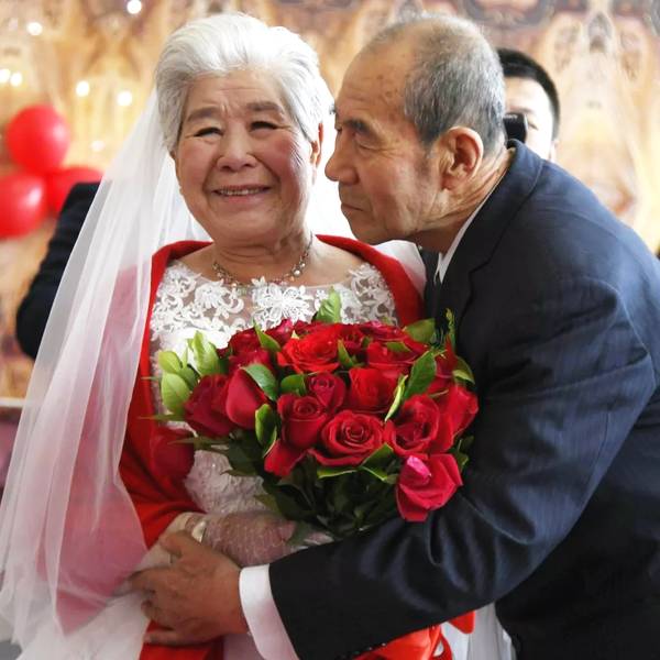 婚禮現(xiàn)場,這對一輩子共患難、同甘苦的老夫妻,笑得那樣甜,那樣暖……