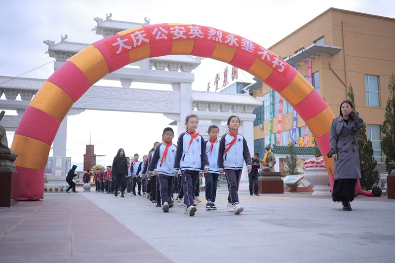 9月30日是烈士紀念日,大慶讓胡路區(qū)喇化小學60名學生身戴紅領巾,在老師帶領下來到大慶公安英烈園。