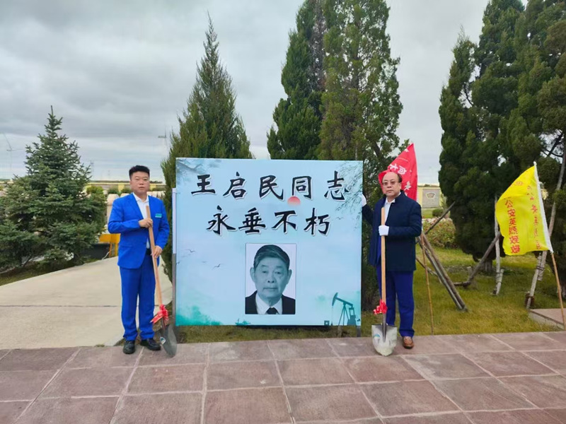 9月30日上午,省殯葬協(xié)會會長,省慈善總會副會長,天堂墓園董事長馬鑫向前來參加祭拜大慶公安英烈的大慶公安局黨委副書記王新發(fā),政治部副主任楊旭,大慶讓胡路區(qū)副區(qū)長王營,區(qū)民政局局長吳曉勇,大慶寶石花物業(yè)公司總經理,黨委書記劉鋒等領導介紹:今天準備給大慶新時期鐵人王啟民立牌建家,以此懷念這位巜最美奮斗者》巜改革先鋒》巜新時期鐵人》大慶油田公司總經理助理,副總地質師。