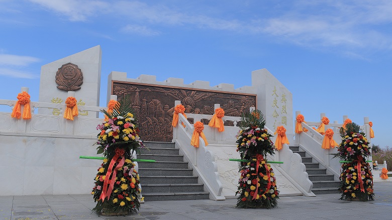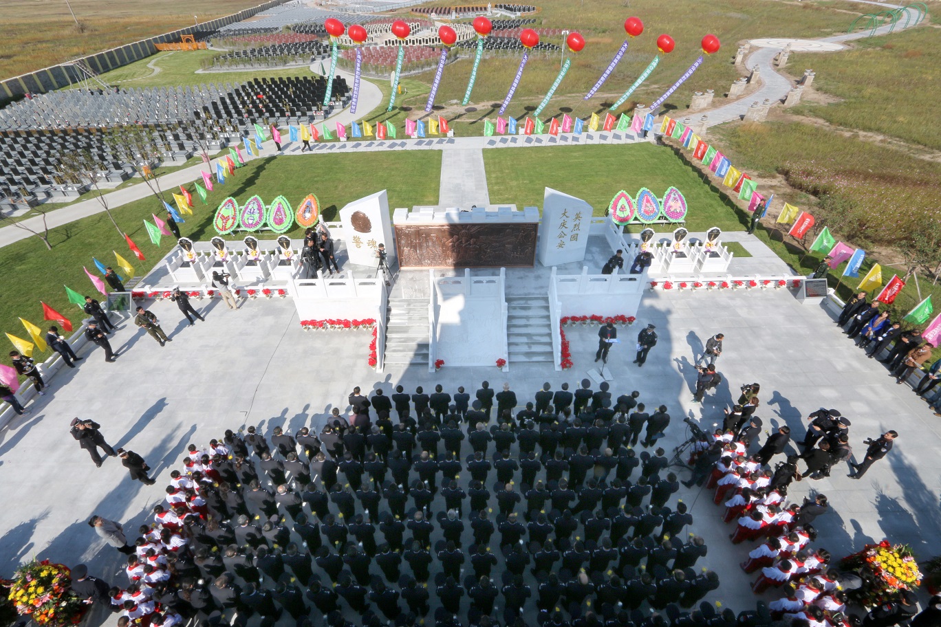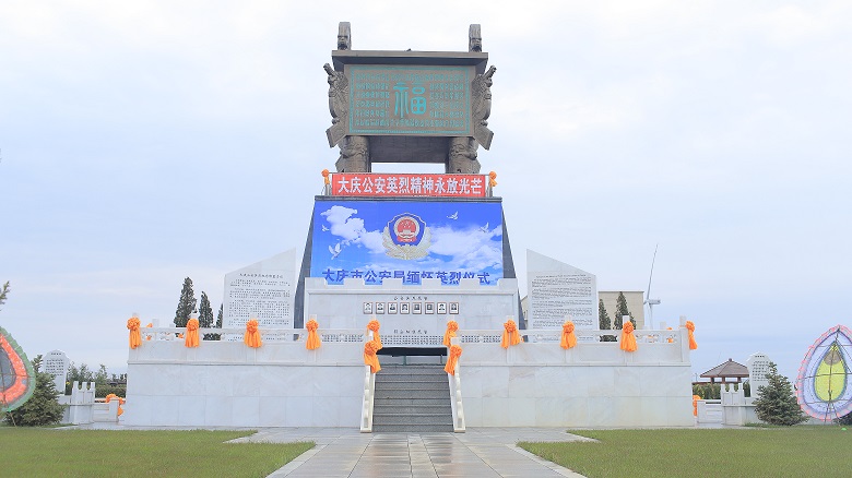 大慶公安英烈園座落于大慶市讓胡路區(qū)天堂墓園內(nèi),由天堂墓園有限公司獨資捐建,整體設(shè)計以“肅穆、莊重、簡潔、大氣”為總基調(diào),將大慶市公安局和公安英烈有關(guān)信息融入設(shè)計理念之中,體現(xiàn)公安特點,突出紀念意義。英烈園位于整個墓園的中軸線上,整體呈南北向的長方形形狀,由墓前廣場、主體形象墻和英烈墓地三部分組成,英烈墓地560平。四周環(huán)種柏樹70棵,代表建局以來因公犧牲的70位民警,寓意英烈精神松柏長青。